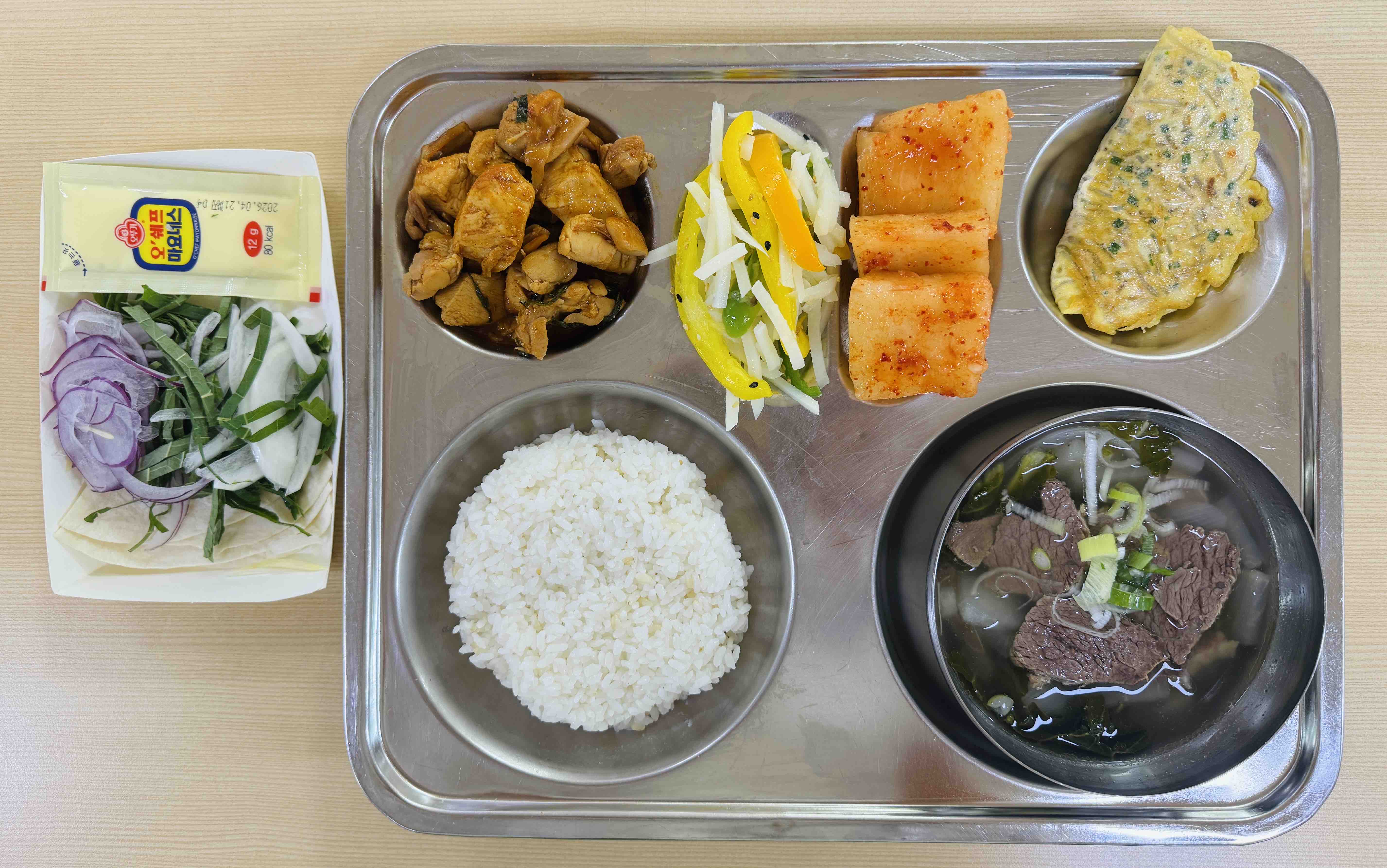<중식>현미밥 소머리국밥 닭갈비&또띠아쌈 새우계란당면전 감자채파프리카볶음 석박지