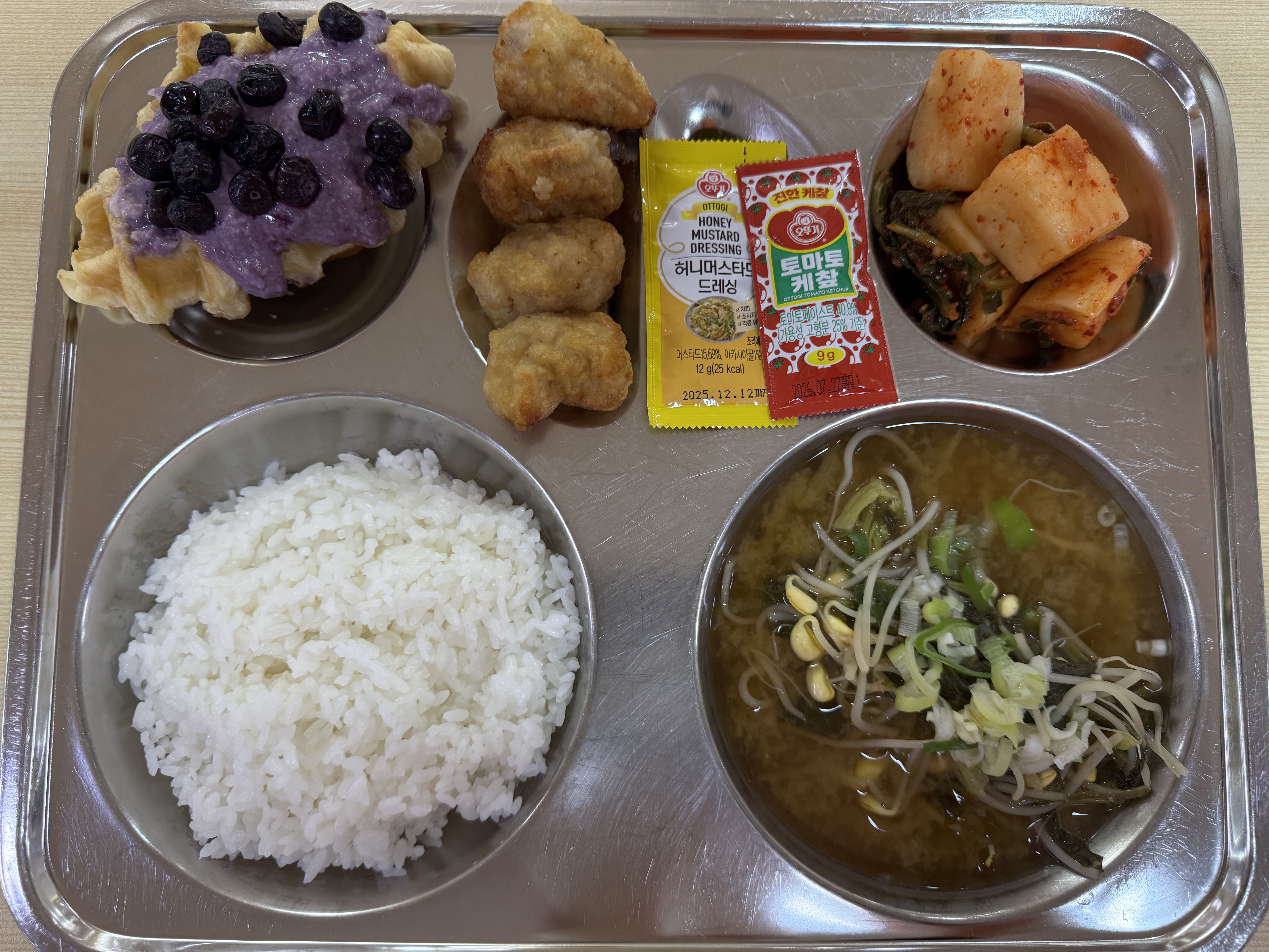 <조식>쌀밥 시래기된장국 치킨가라아게*머스터드 총각김치 전남친크로플