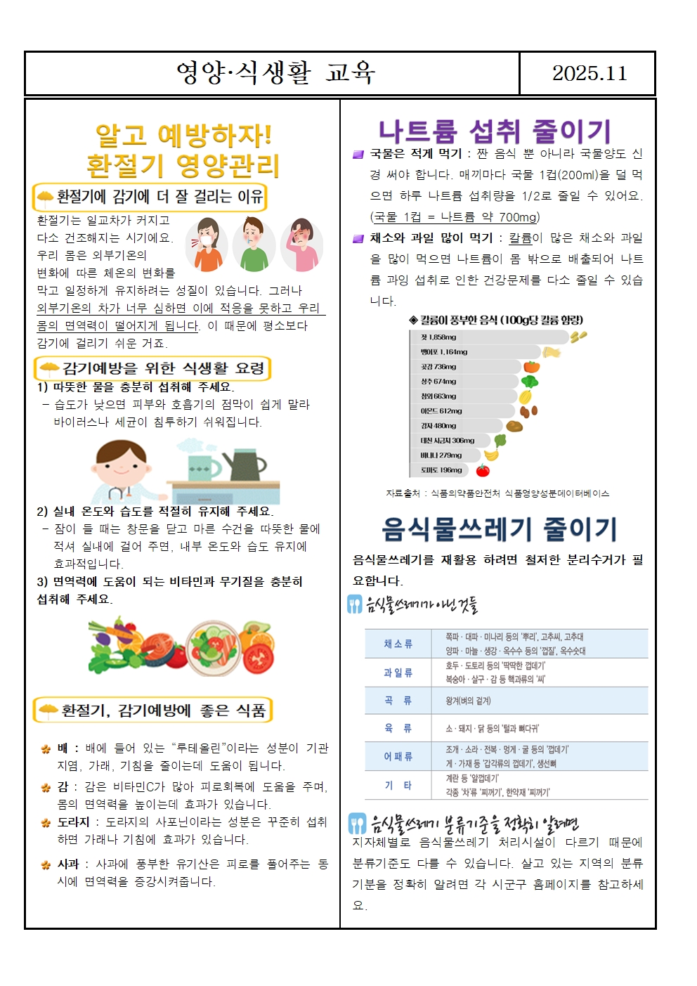2025년도 11월 학교급식 식재료 원산지 및 영양표시제
