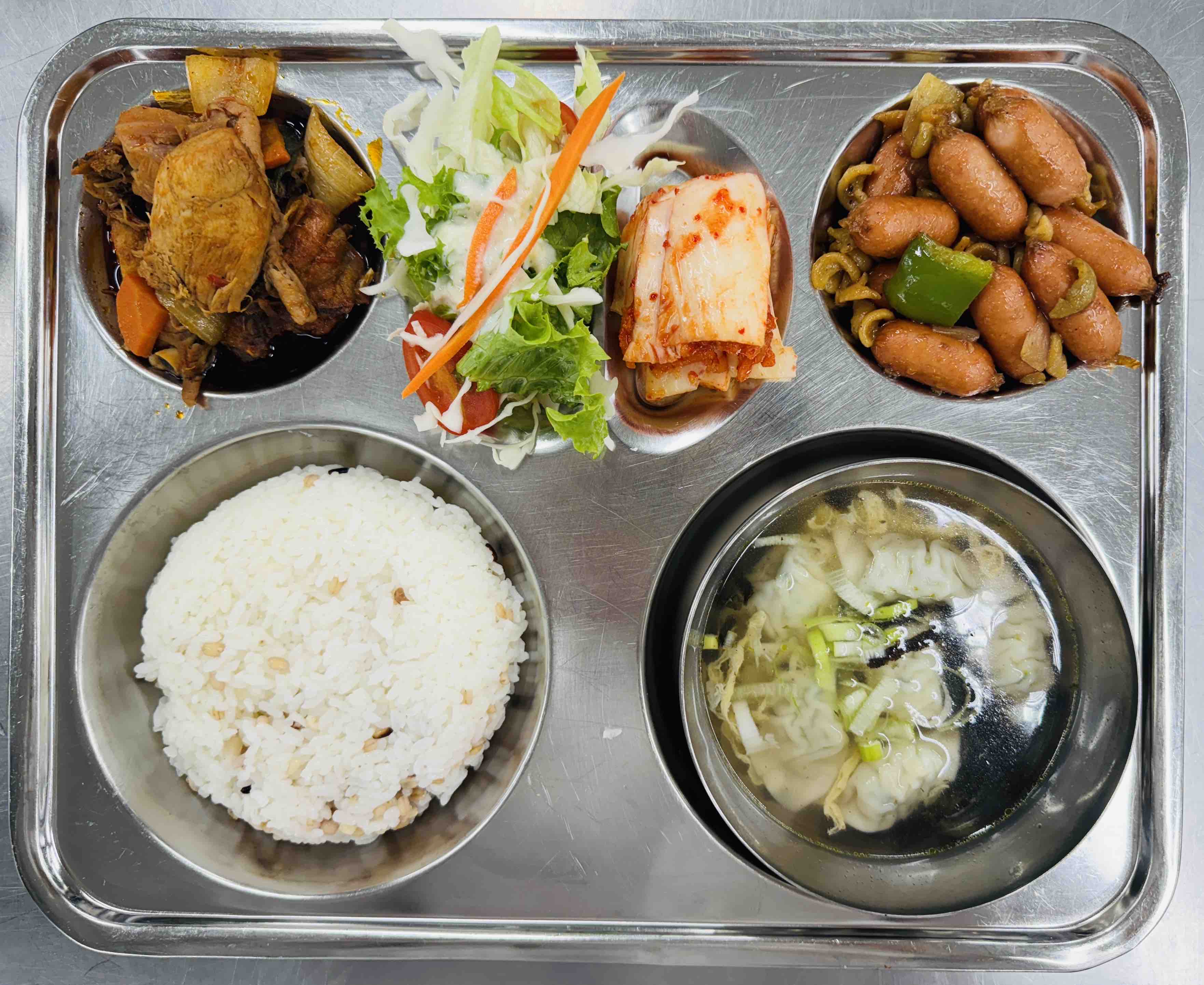 <석식>혼합잡곡밥 방울방울만두국 마라안동찜닭 푸슬리비엔나볶음 양상추샐러드&유자드레싱 배추김치
