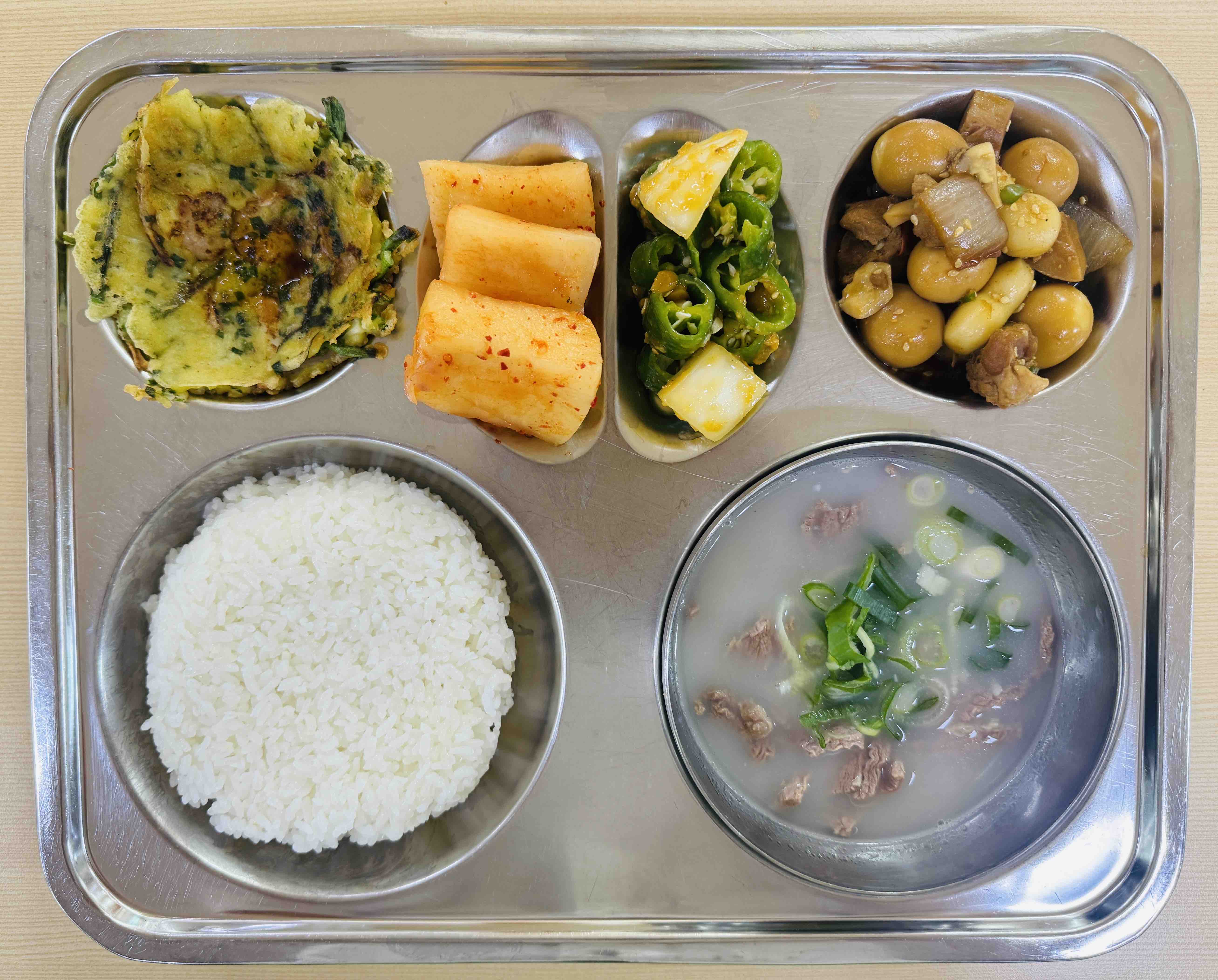 <중식>칼슘찹쌀밥 설렁탕 수제해물파전&초간장 모둠장조림 오이고추된장무침 석박지