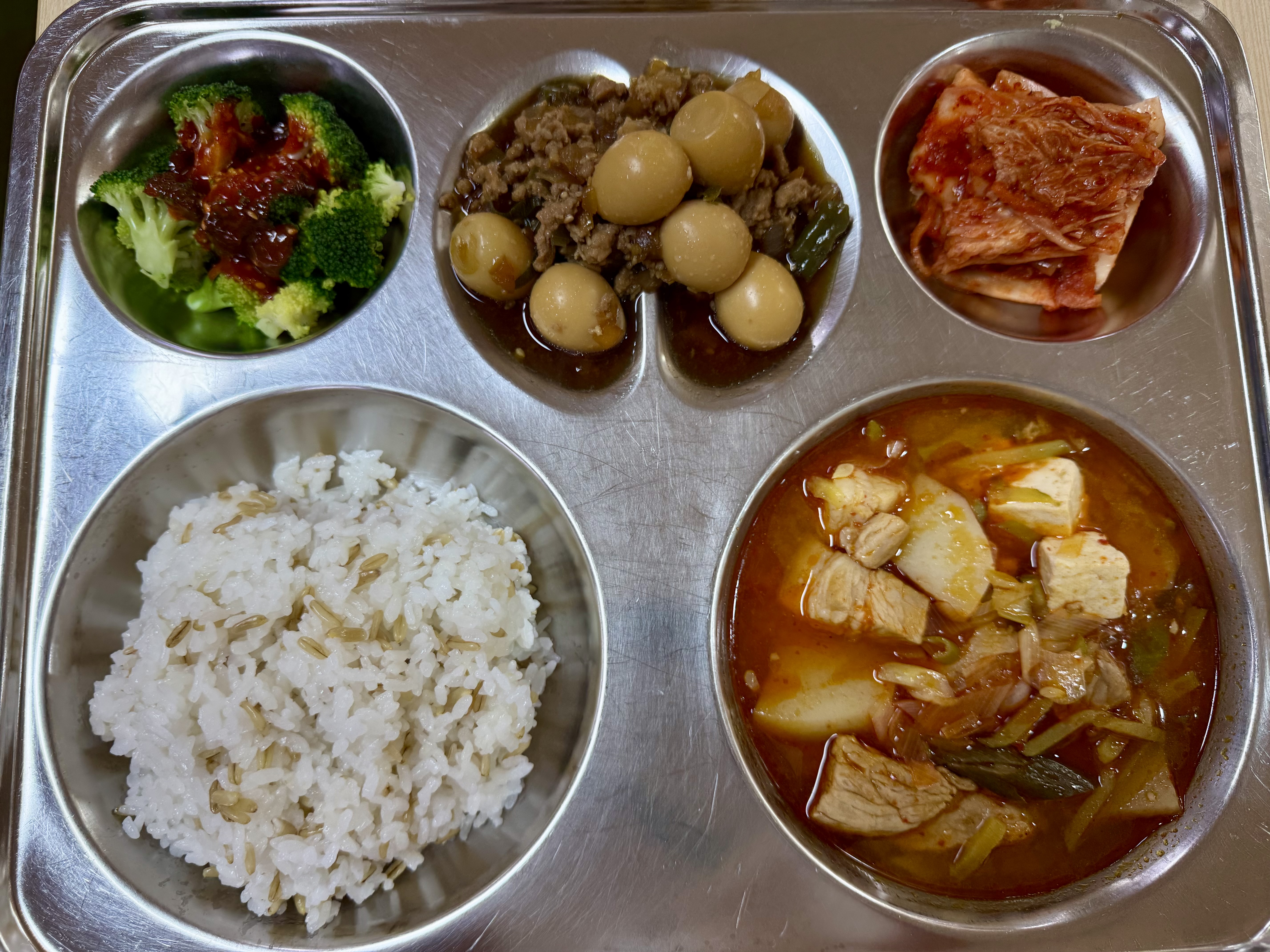 <조식>칼슘귀리밥 애호박찌개 소보로장조림 브로콜리&초장 배추김치