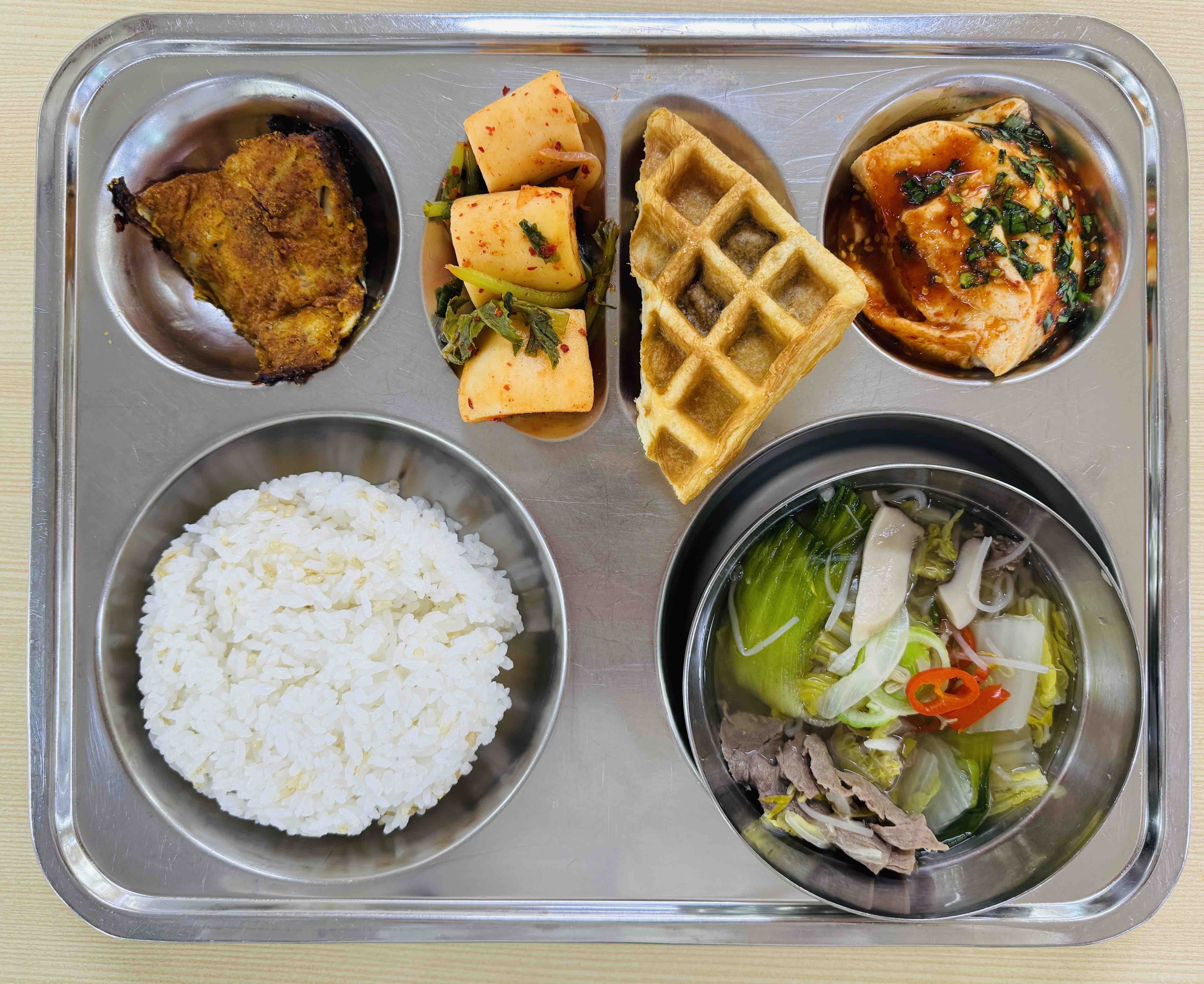 <중식>칼슘현미밥 샤브샤브국 순살볼락구이 양념순두부 총각김치 앙밤샌드