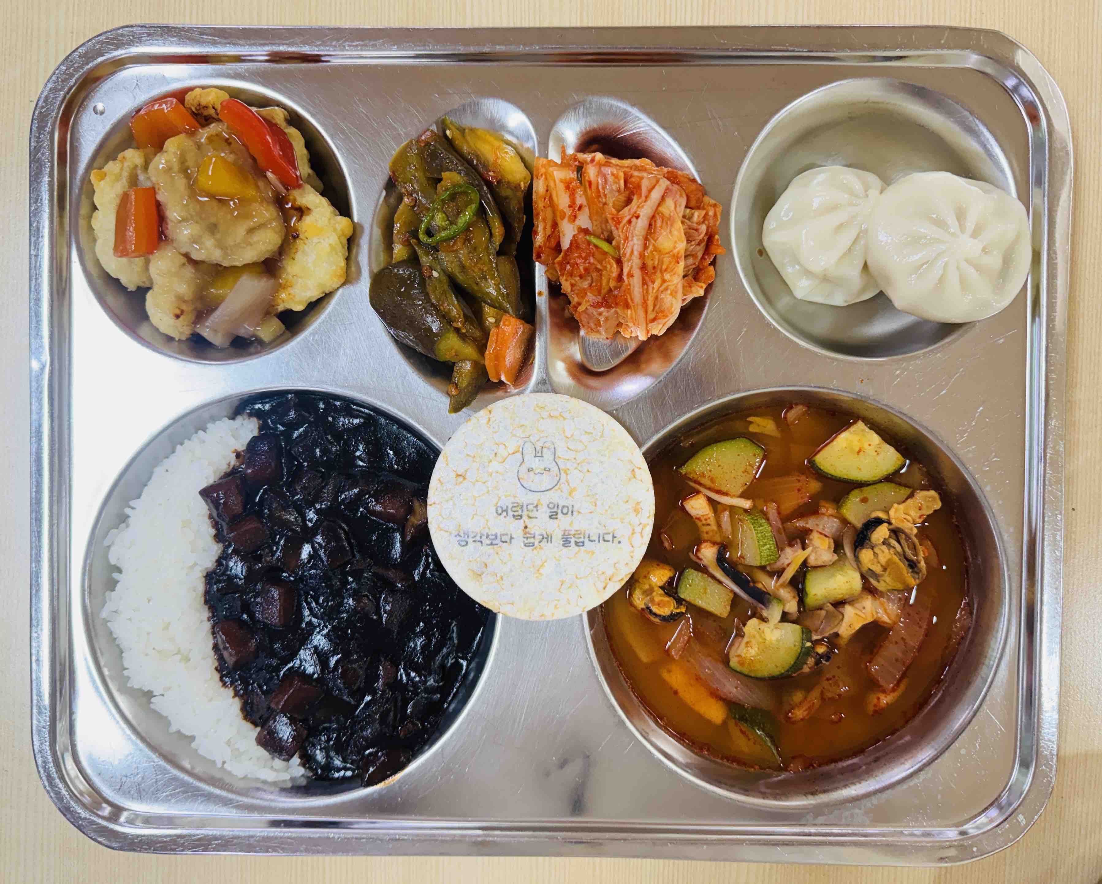 <중식>자장밥 해물짬뽕국 꿔바로우 육즙사오롱바오 사천식가지볶음 배추김치 달칩초코샌드